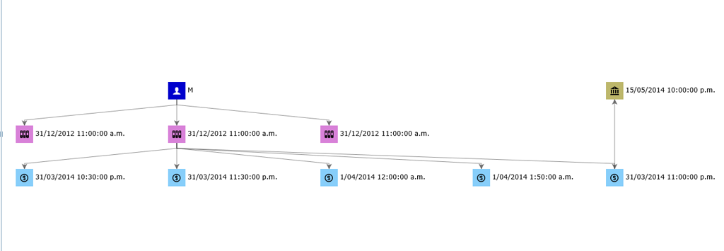 I was expecting the node (with house like icon) to appear on the right-hand side of the transaction-like node( $ icon). What am I missing?. The first 3 levels appear OK but not there after.