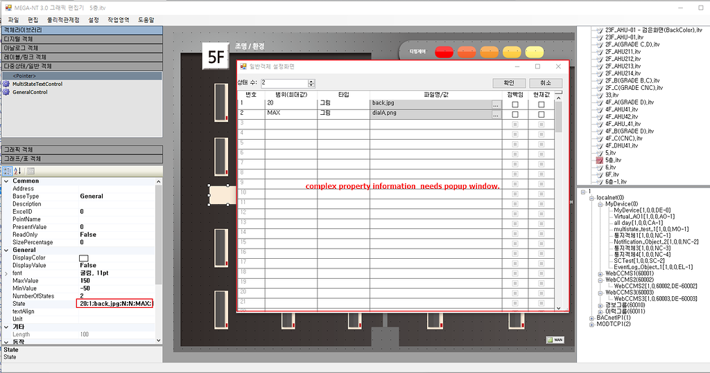 So the property of the graphic object has popup window to set a complexed property information